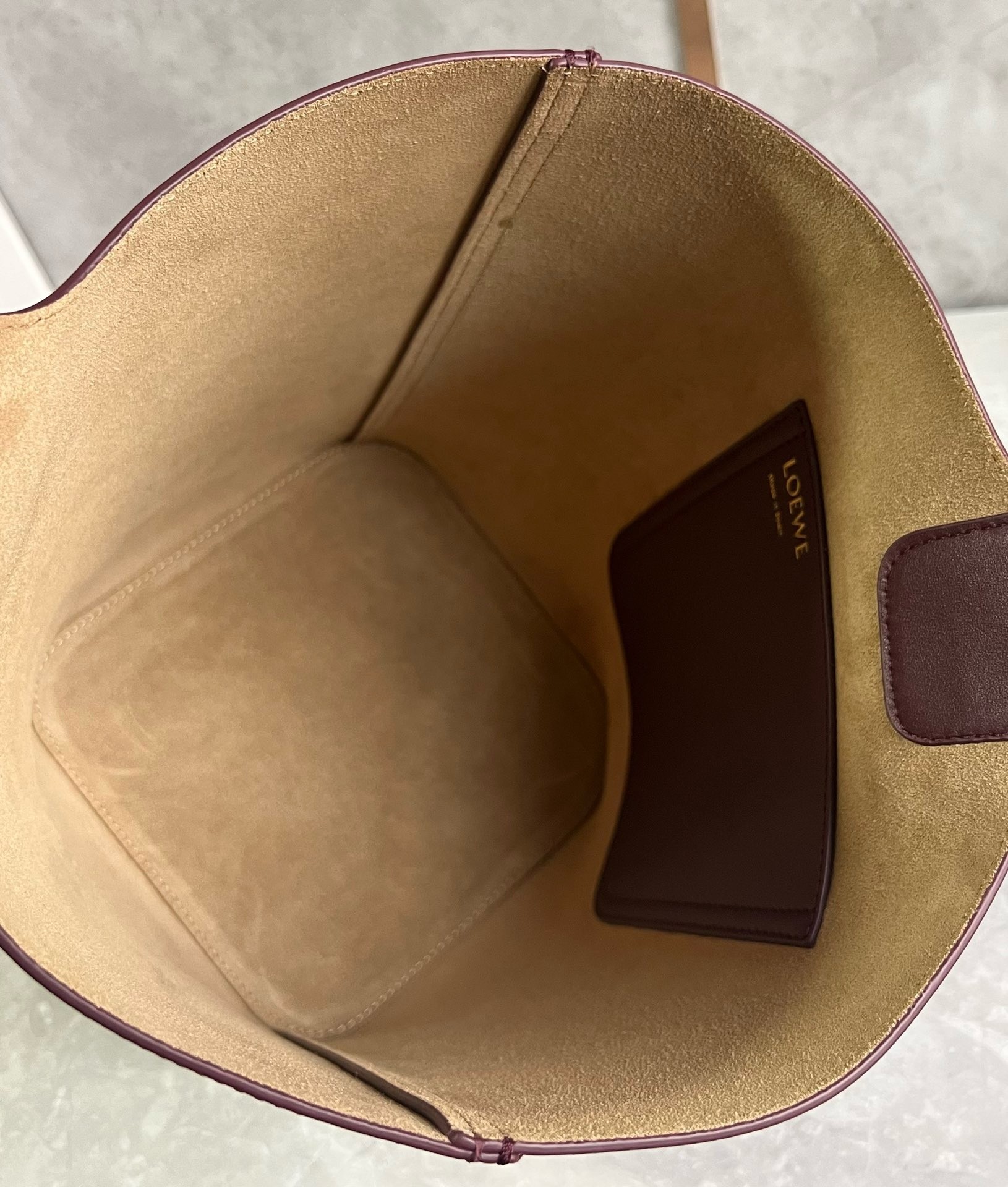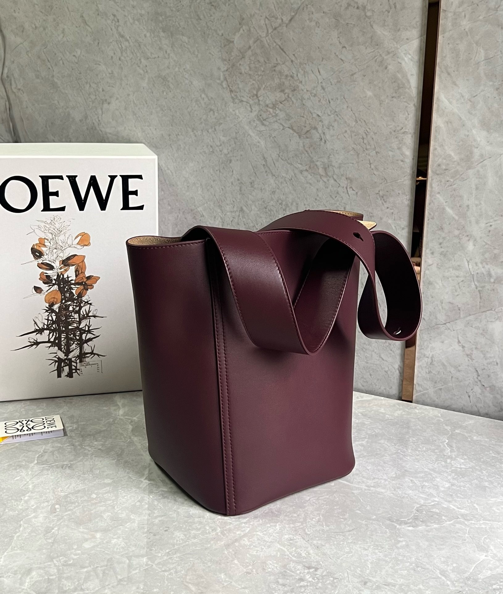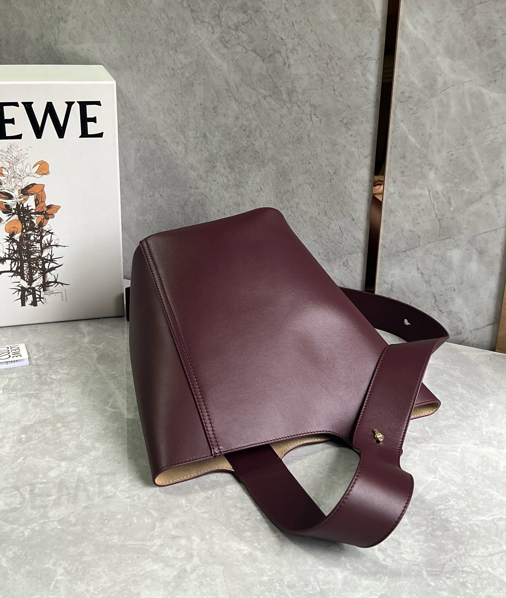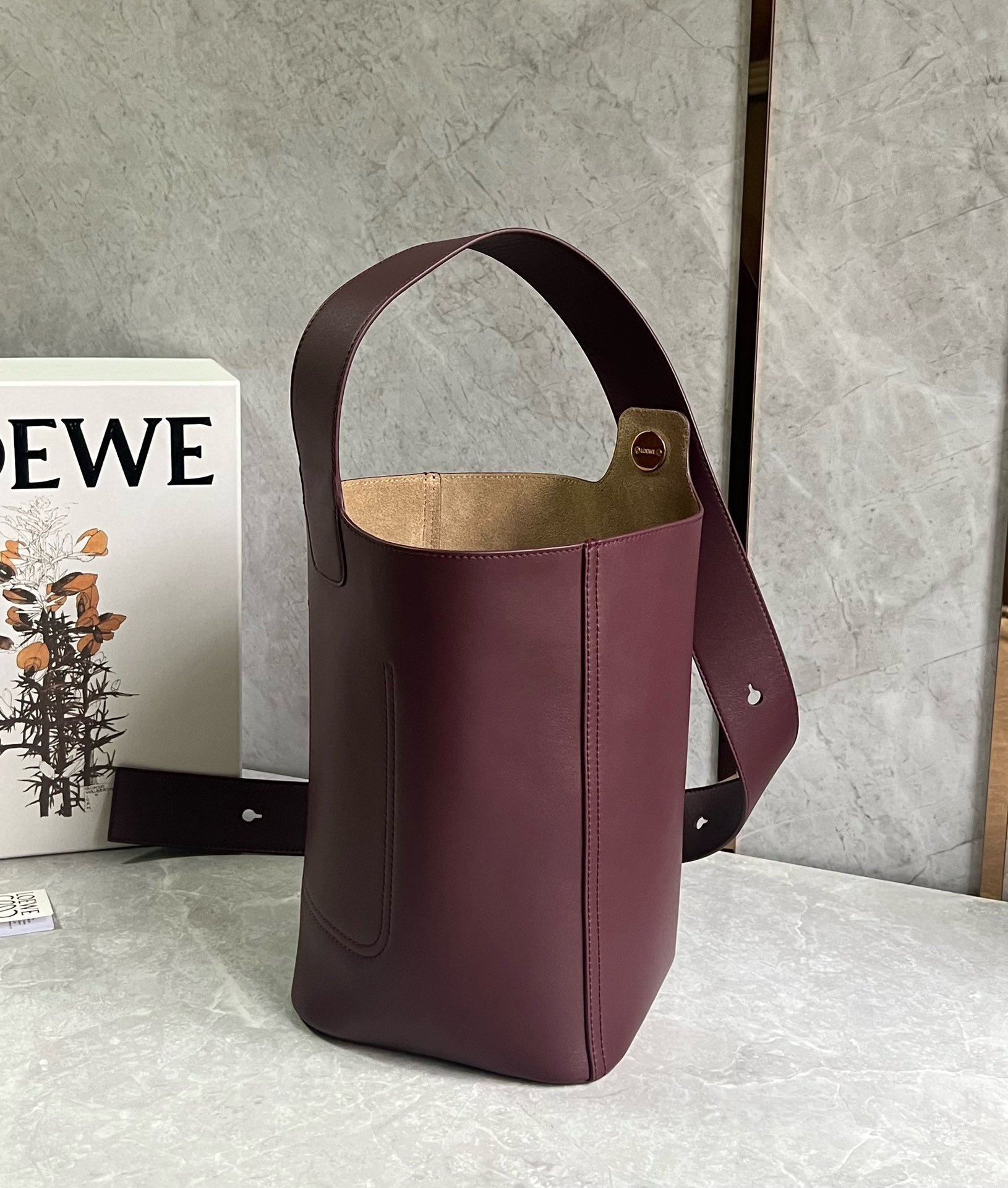 Loewe Medium Pebble Bucket Bag in Burgundy Calfskin