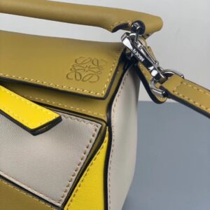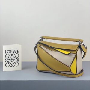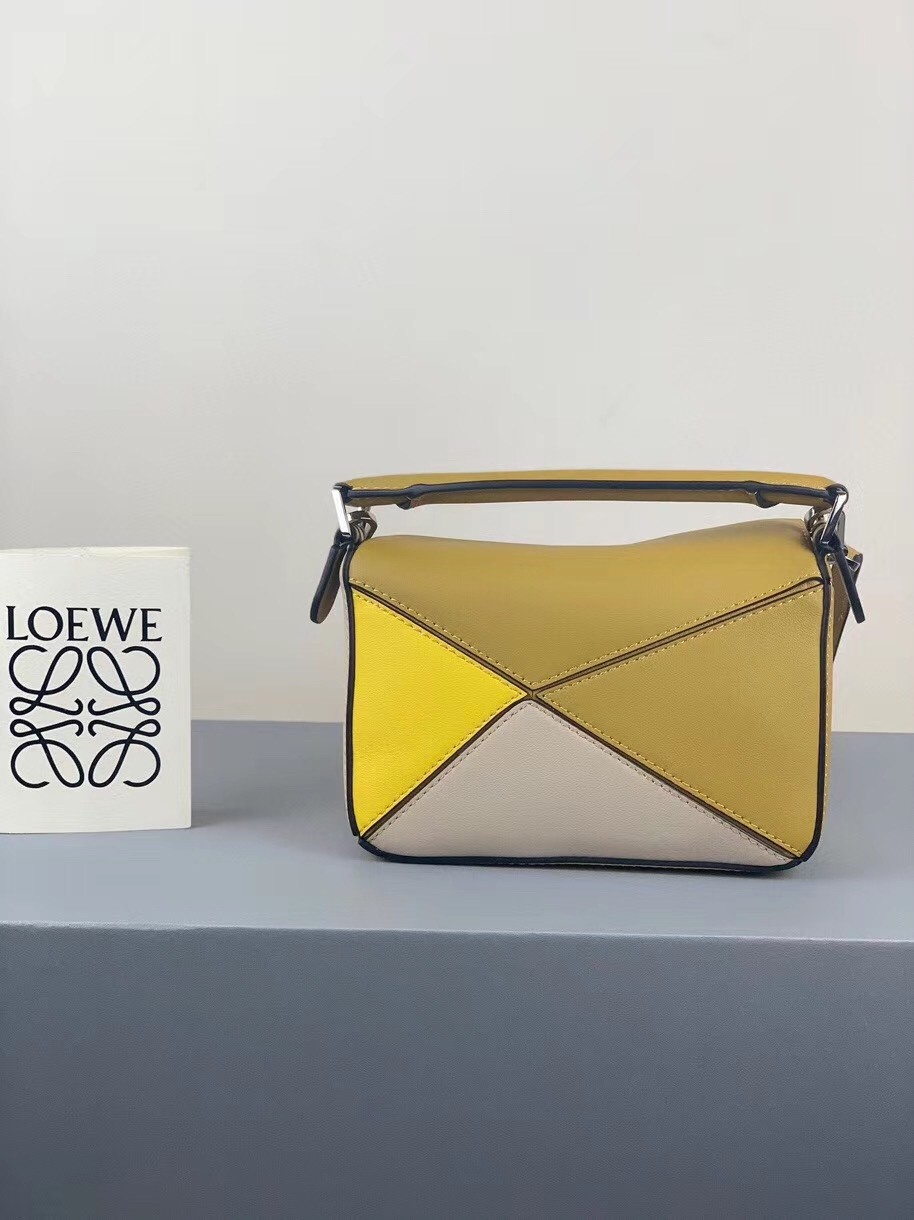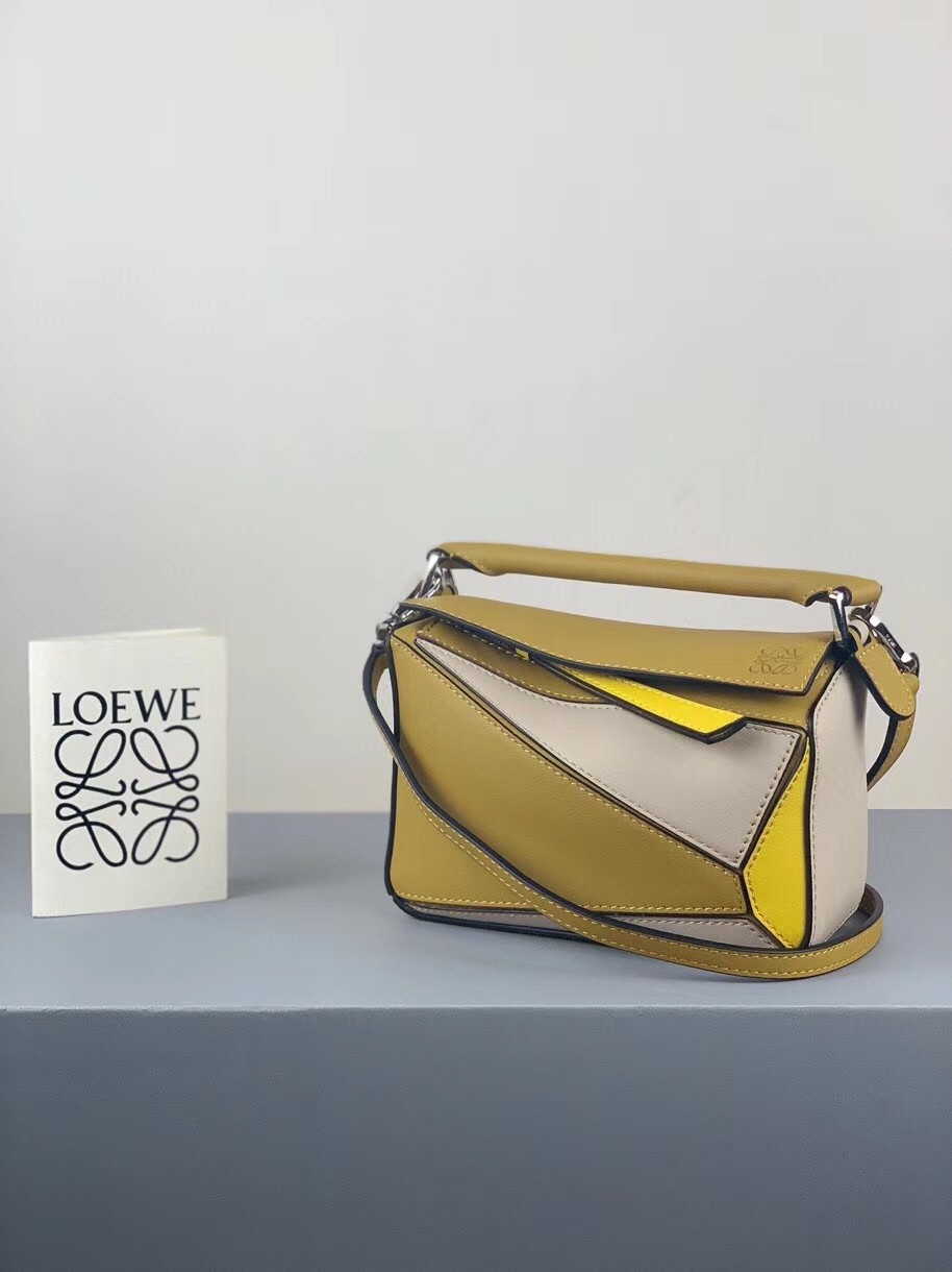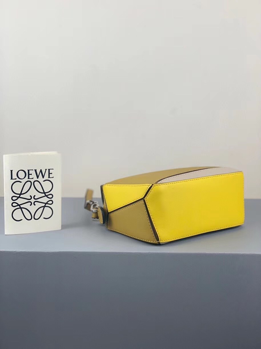 Loewe Mini Puzzle Bag In Ochre/White/Yellow Calfskin