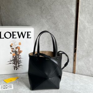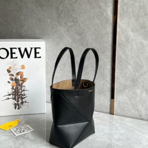 Loewe Mini Puzzle Fold Tote Bag in Black Calfskin