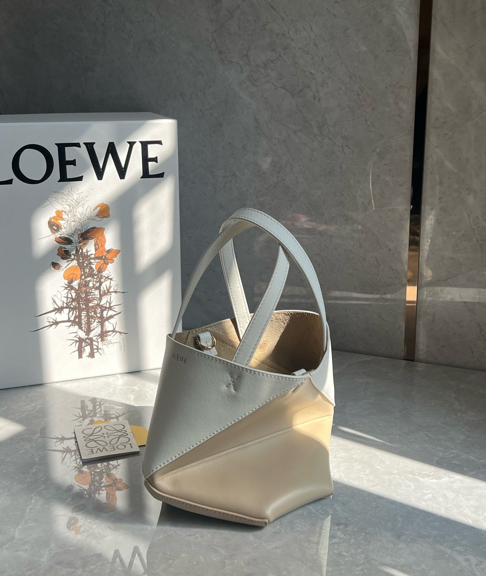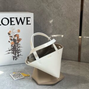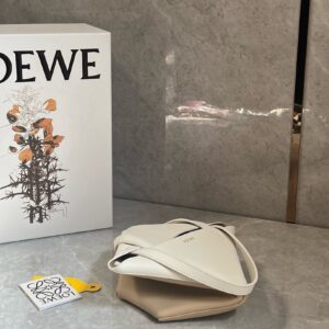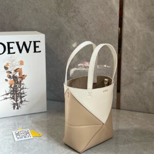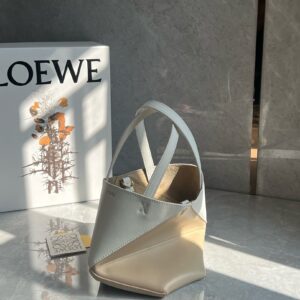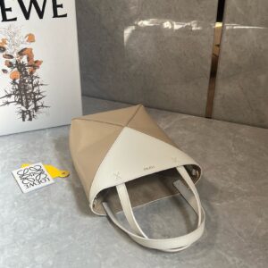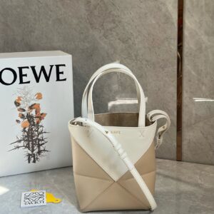 Loewe Mini Puzzle Fold Tote Bag in White/Beige Calfskin