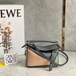 Loewe Puzzle Mini Bag In Asphalt Grey/Nude/Green Calfskin
