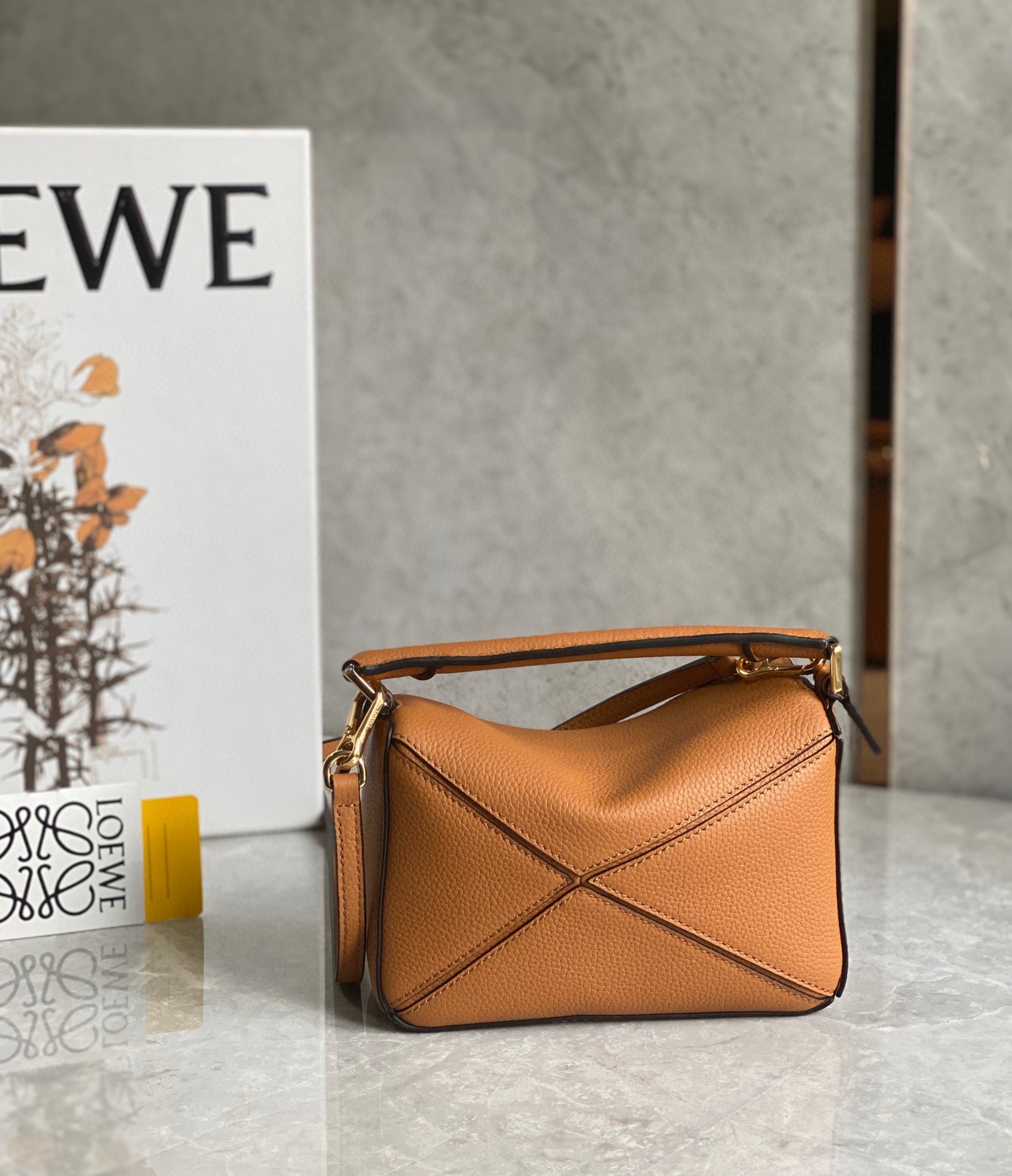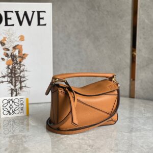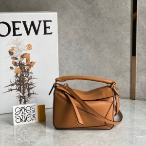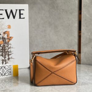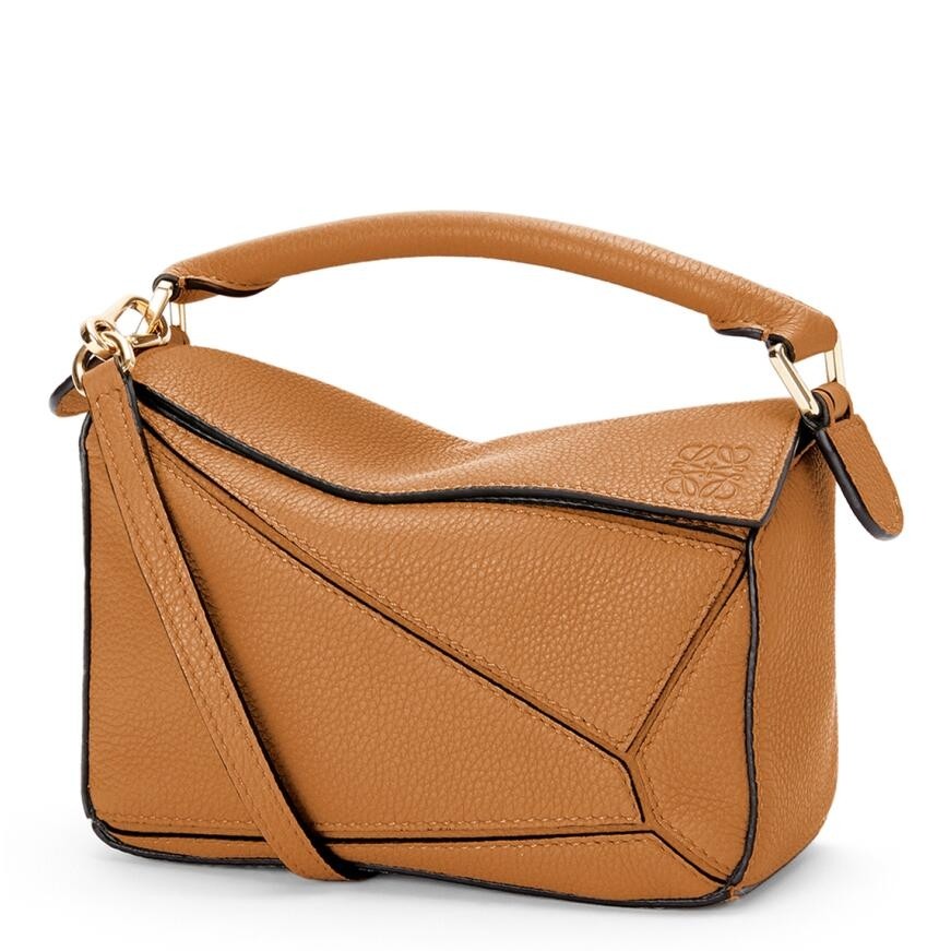 Loewe Puzzle Mini Bag In Brown Grained Calfskin