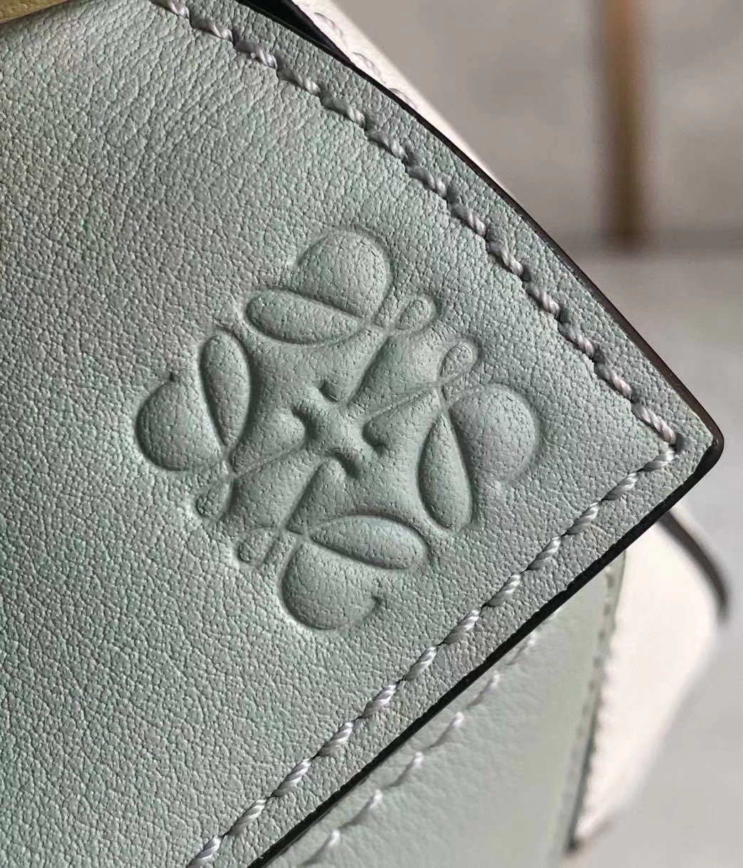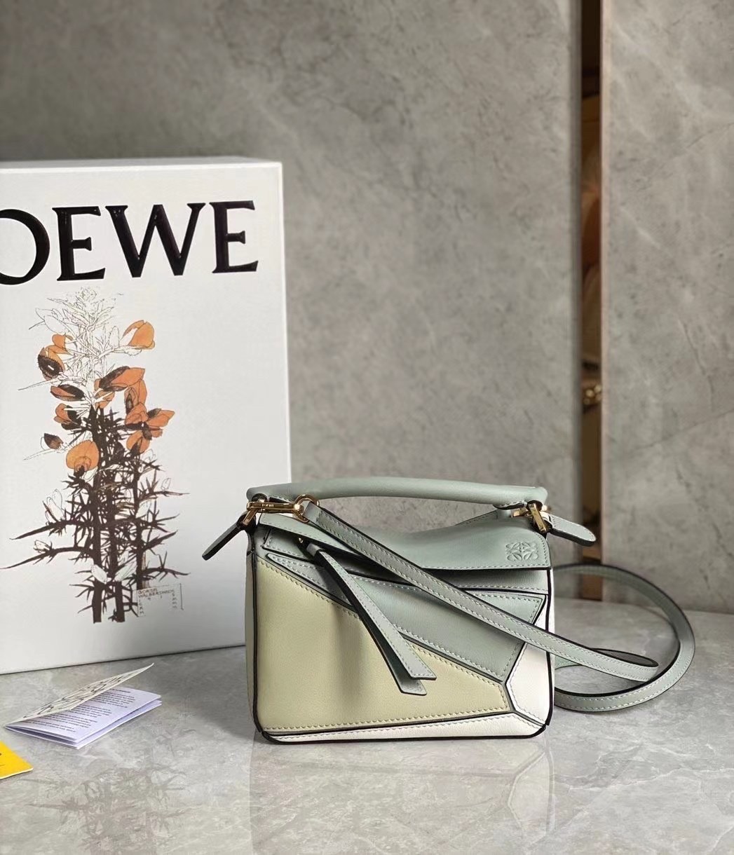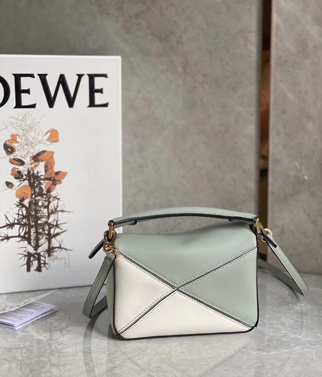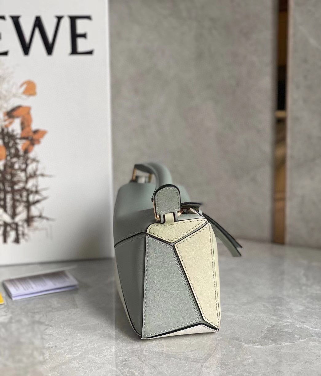 Loewe Puzzle Mini Bag In Grey/Cream/White Calfskin