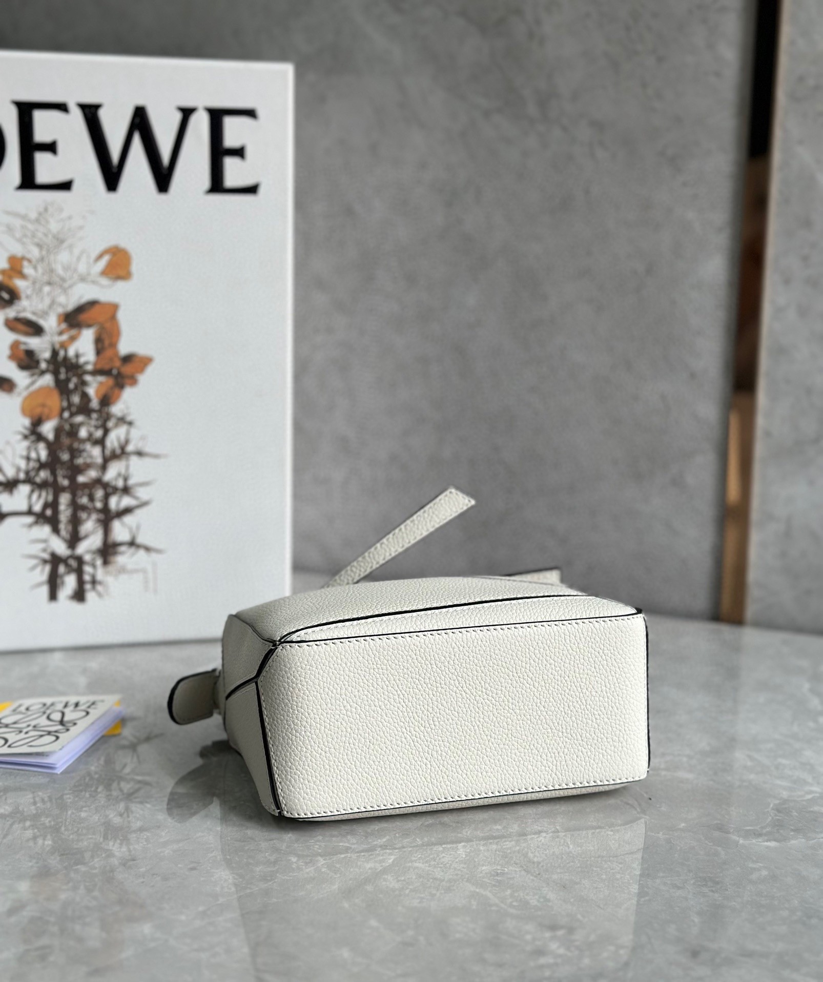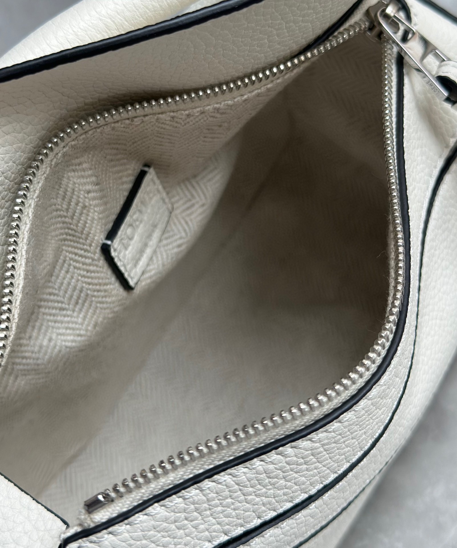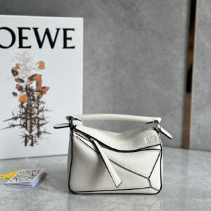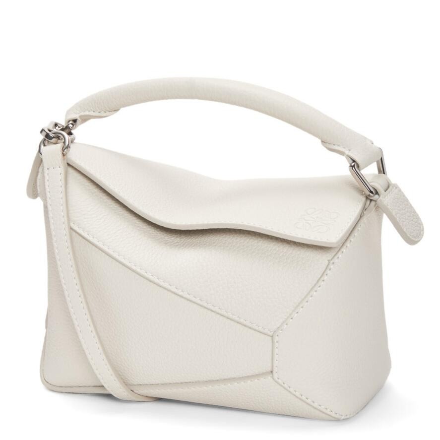Loewe Puzzle Mini Bag In White Grained Calfskin