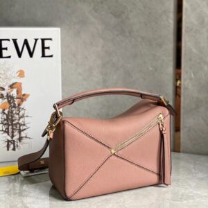 Loewe Puzzle Small Bag In Dark Blush Grained Leather
