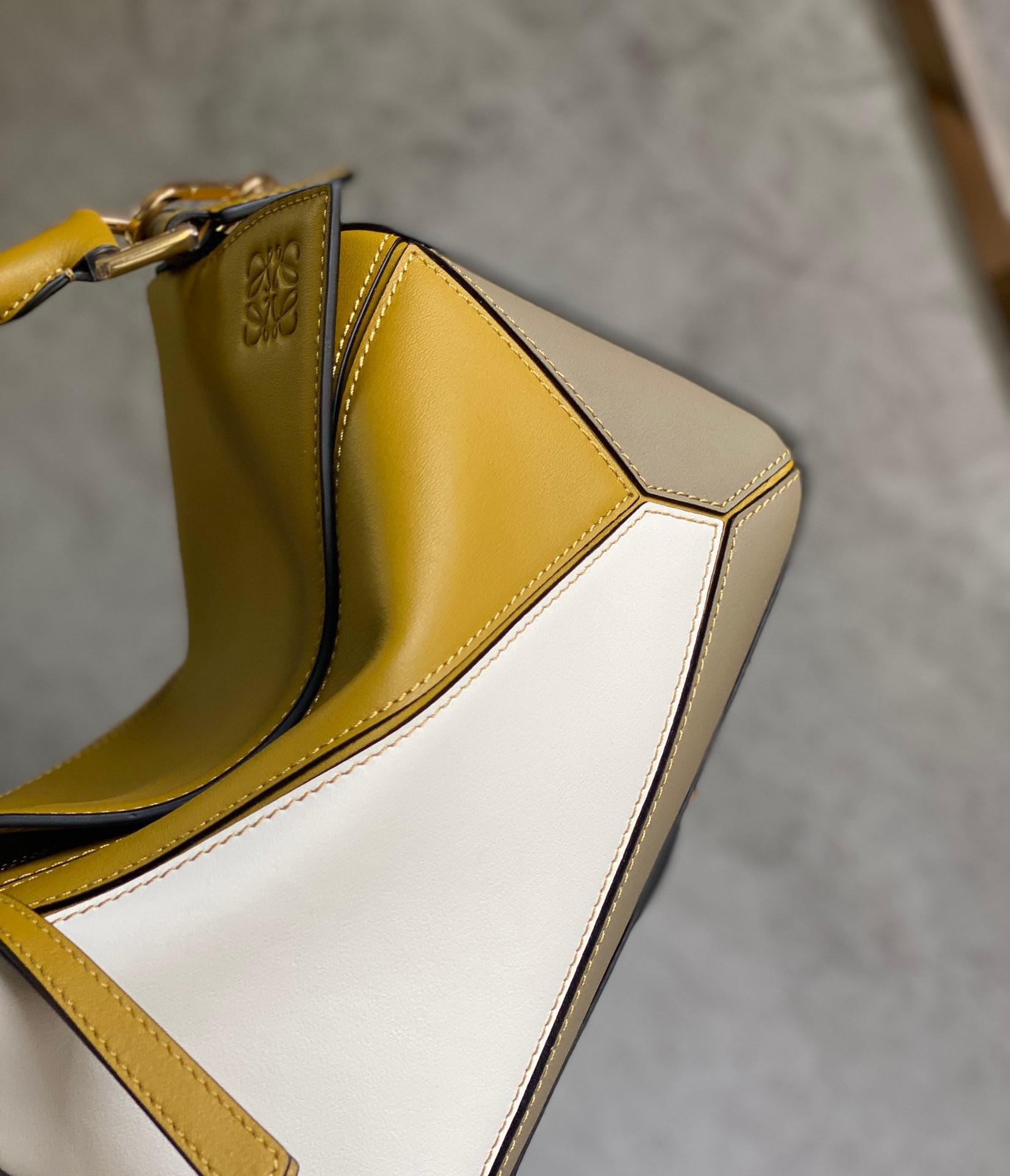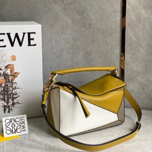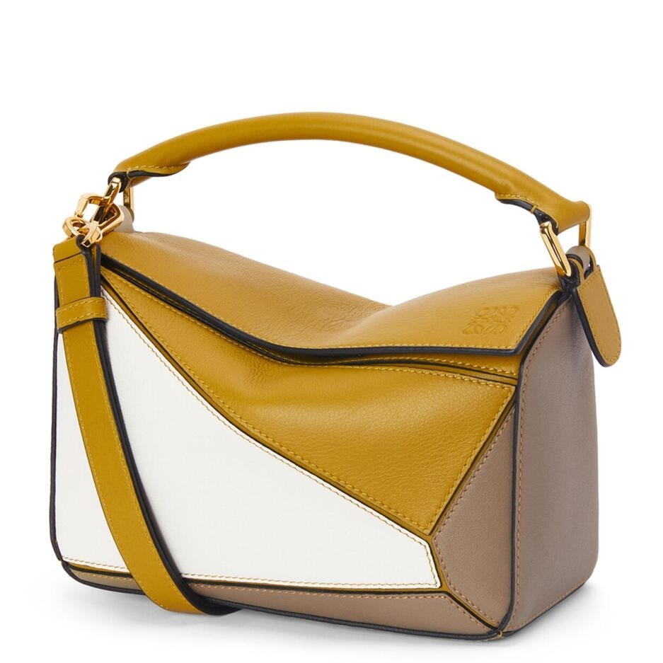 Loewe Puzzle Small Bag In Ochre/White/Taupe Calfskin