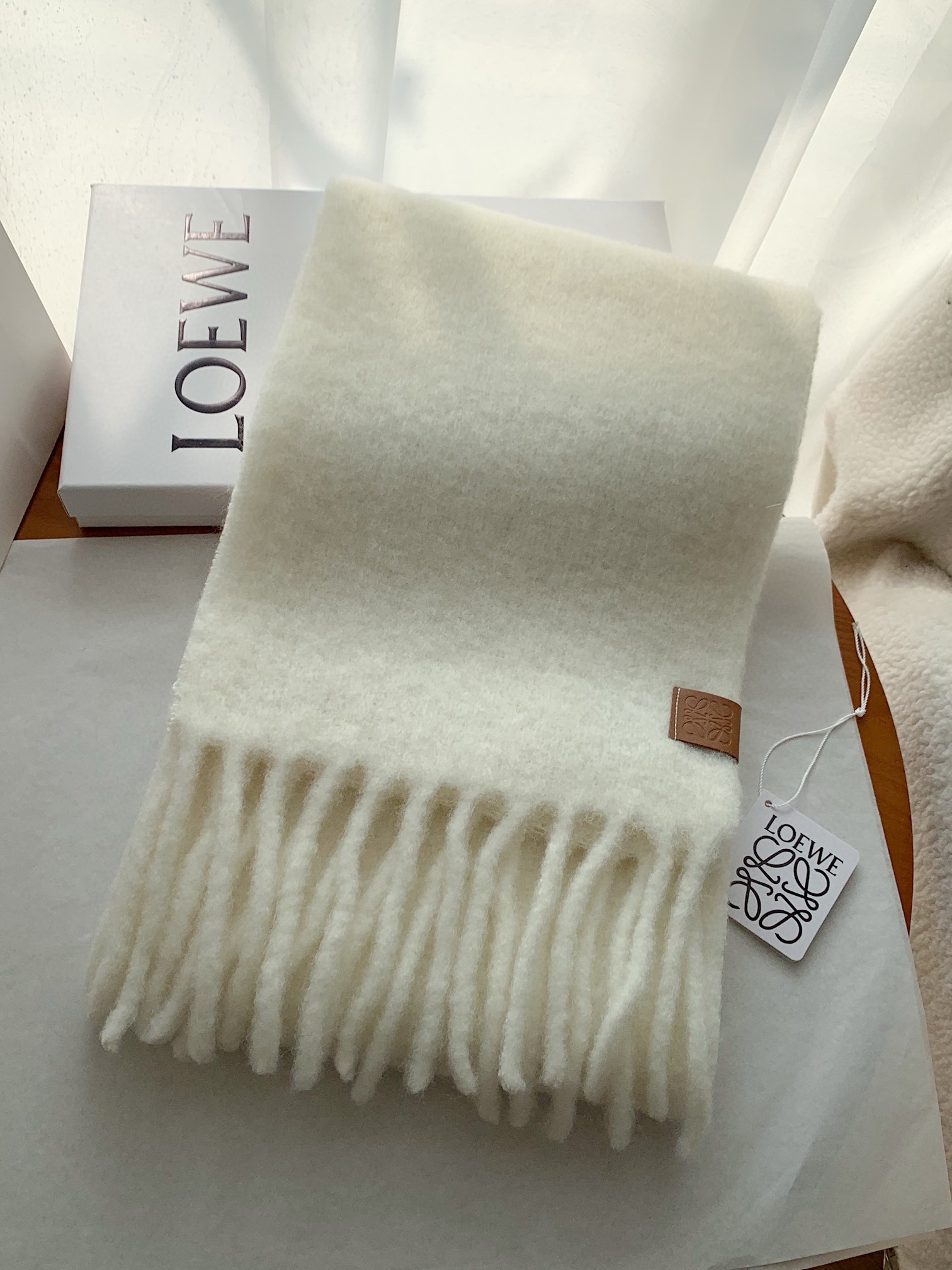 Loewe Scarf in White Mohair and Wool