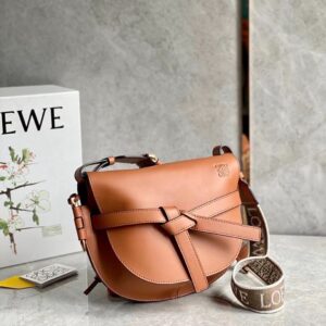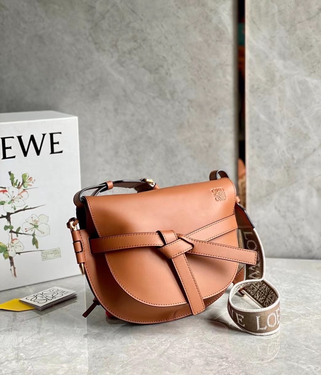 Loewe Small Gate Bag In Tan Calfskin and Jacquard