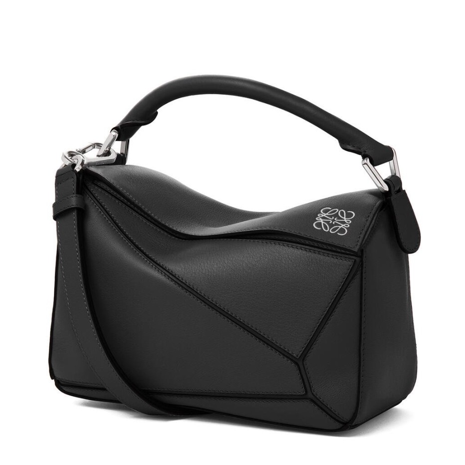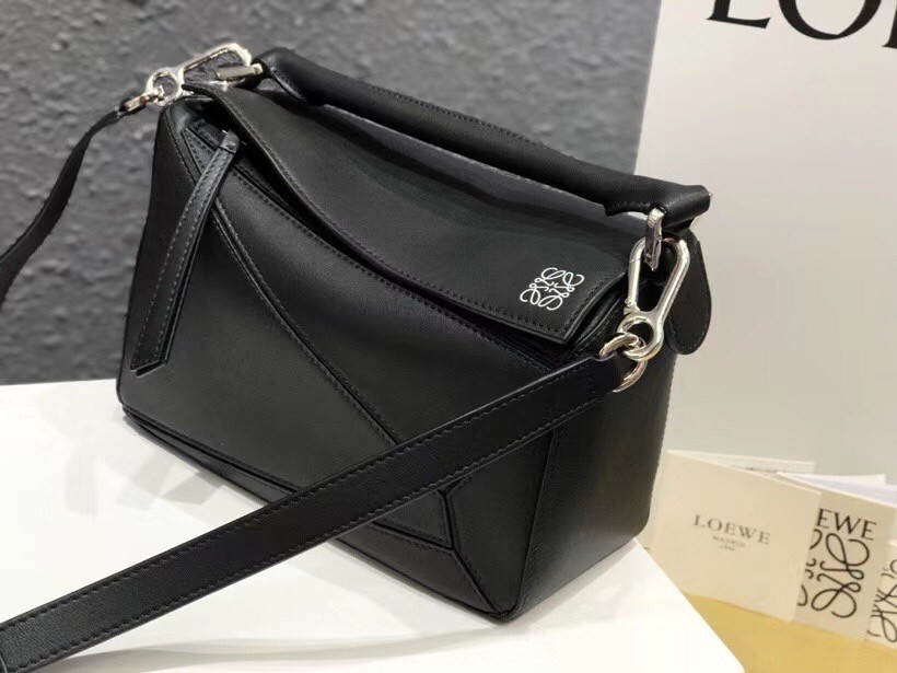 Loewe Small Puzzle Bag In Black Calfskin Leather
