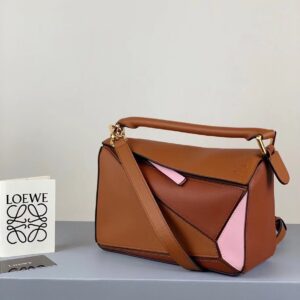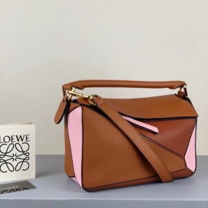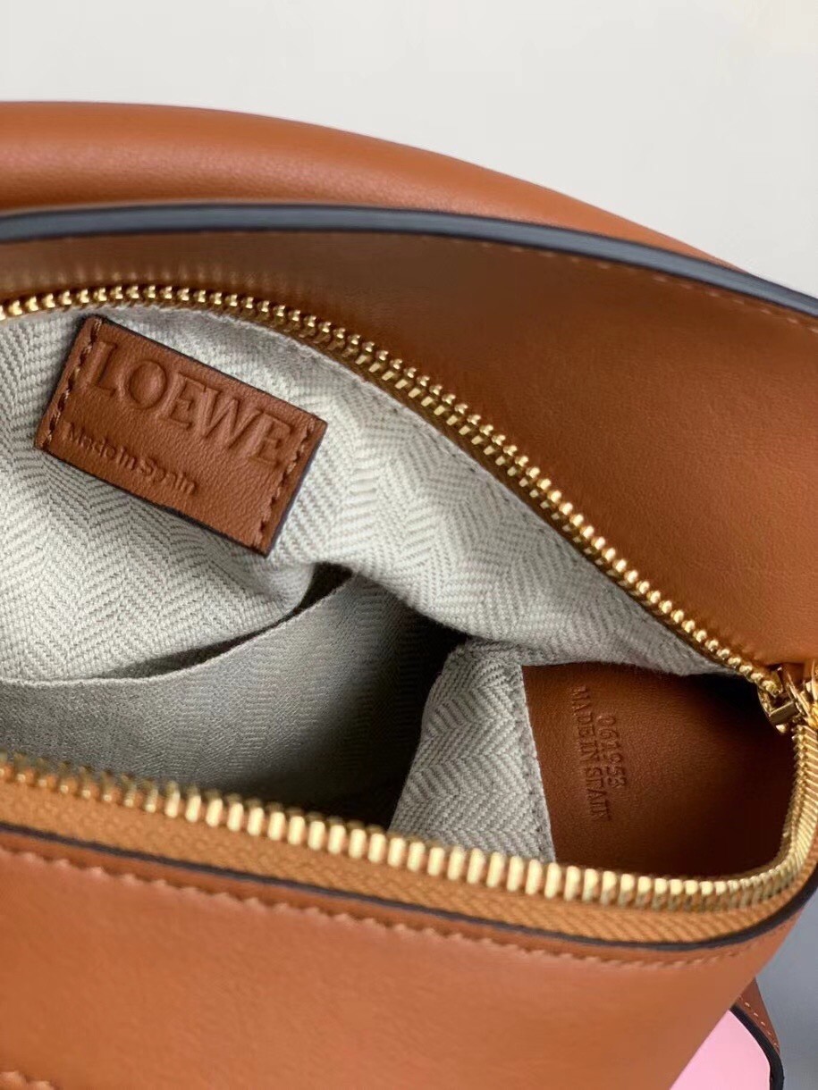Loewe Small Puzzle Bag In Brown/Pink/Camel Calfskin
