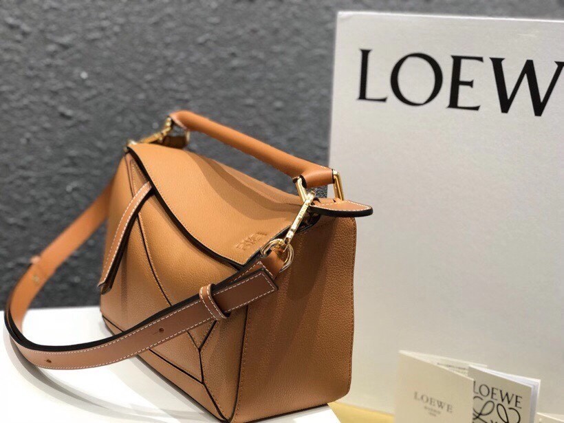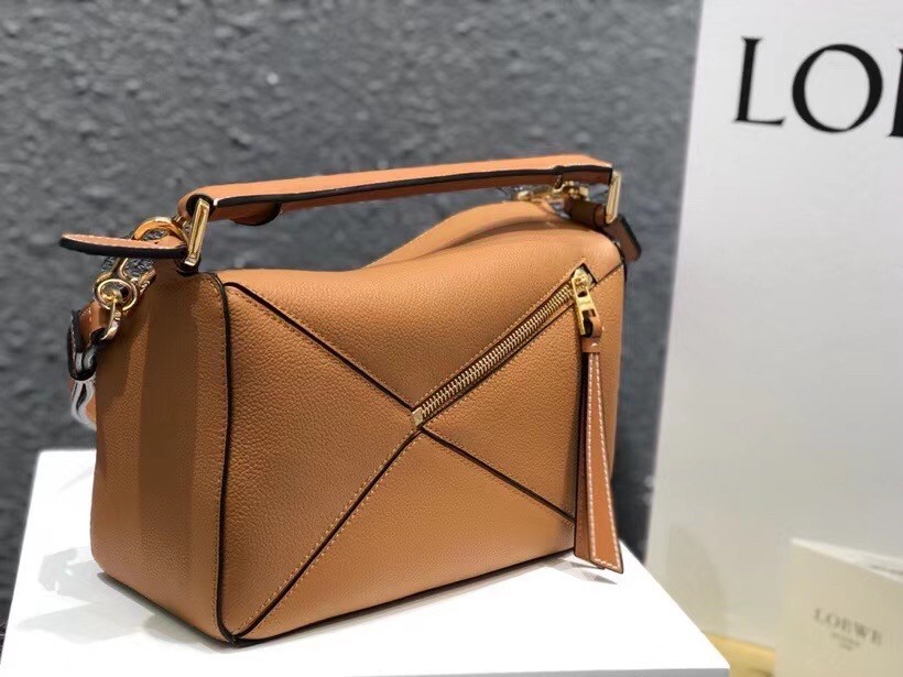 Loewe Small Puzzle Bag In Tan Grained Calfskin