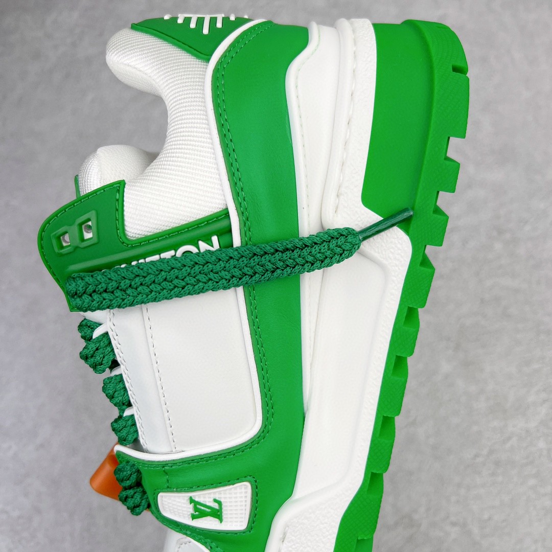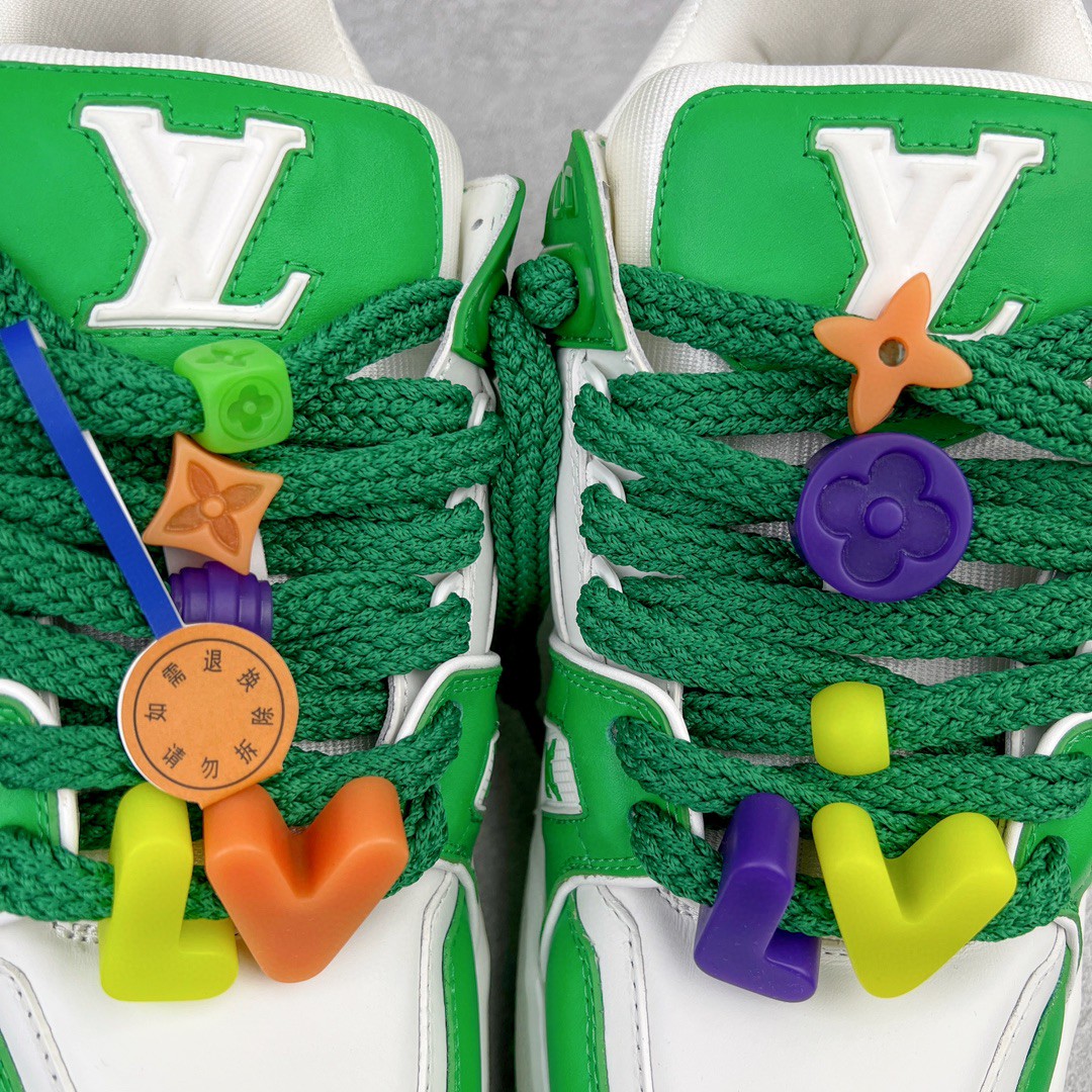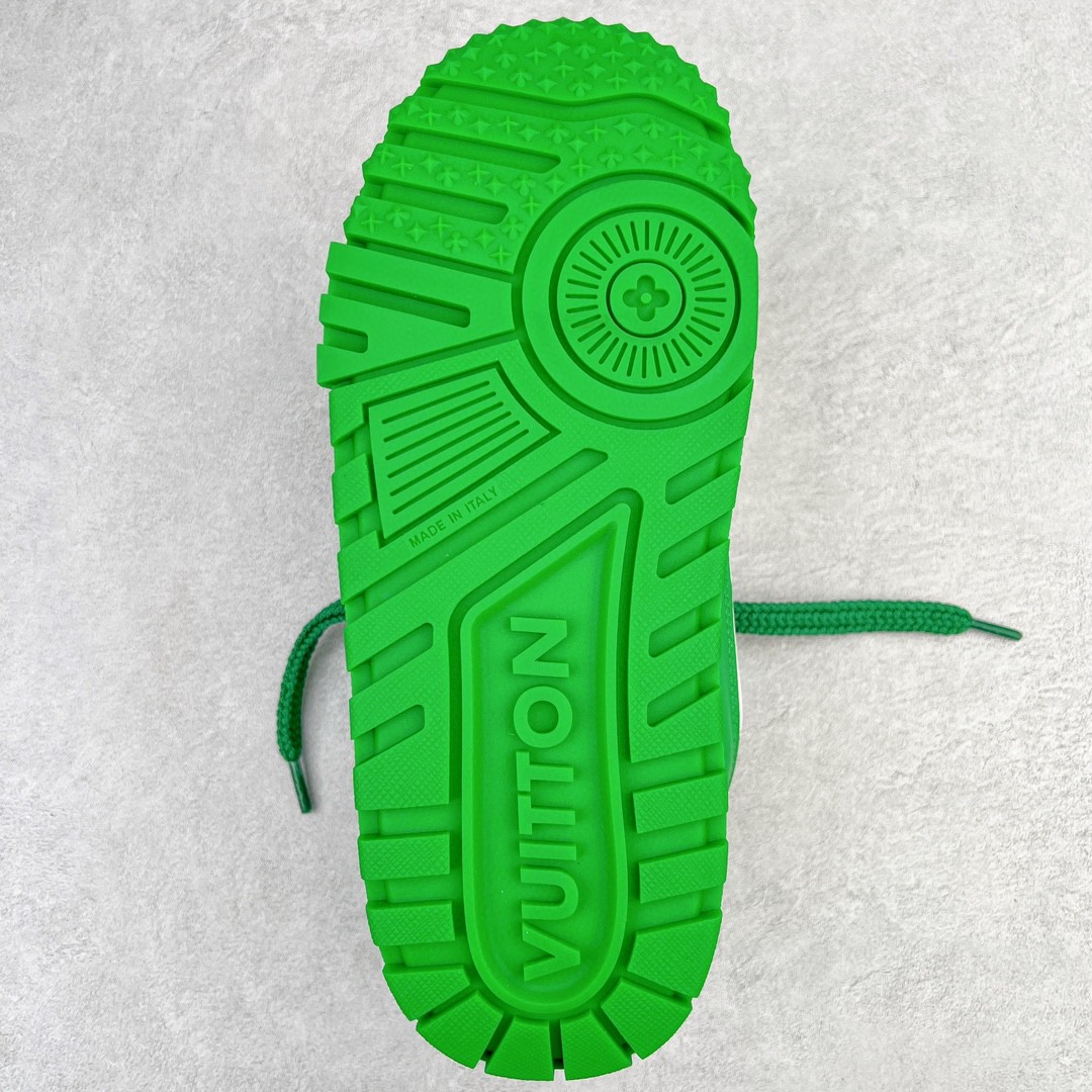 Louis Vuitton TTrainer Maxi Low-Top Sneakers White and Green Colourway Casual Footwear Trainers Sports Shoes Men’s and Women’s Footwear 1AB8SD