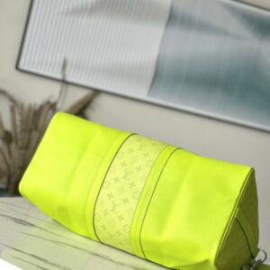This Keepall 50 Bandoulière travel bag comes from the Taïgarama travel leather goods series, incorporating a Monogram canvas structure on the front and sides of the Taïga calfskin body. Check-in luggage size with detachable and adjustable shoulder straps, zipped inner pocket, and leather nameplate complete the overall design.