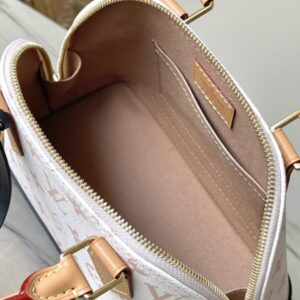 White flower brand new single Doon canvas, integrated with modern “Alma BB”. The cowhide trim accentuates the beige tones, with fungus leather accents on the handles and straps, and black on the bottom of the bag and keychain. 2 top handles and removable strap allow for a variety of styles.