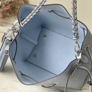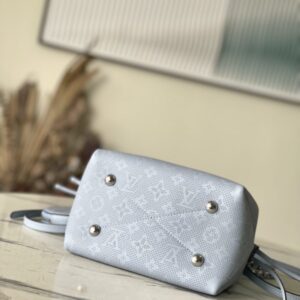 This Bella bucket bag with coin purse is made of Mahina calfskin with a plain weave and Monogram floral pattern surrounded by more than 60,000 custom perforations. Tonal leather trim and hardware complete the overall design. Finished with braided handles and an adjustable, detachable leather shoulder strap.