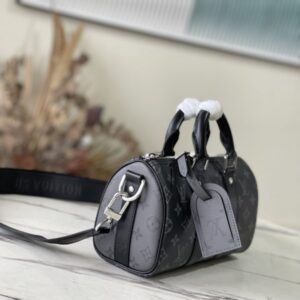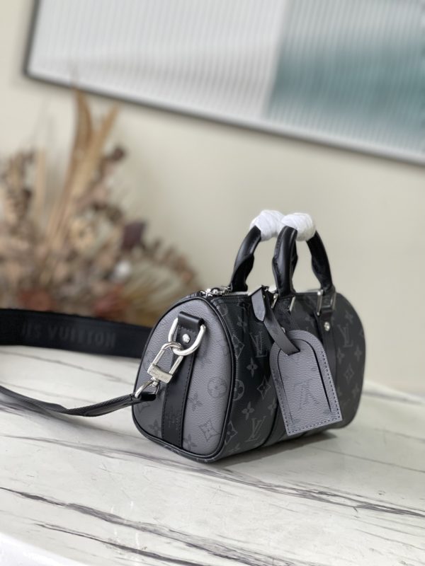 Black flower This Keepall 25 handbag is made of Monogram Eclipse Reverse canvas, showing an elegant reinterpretation of classic patterns. Reinforced straps and a leather nameplate continue the Keepall collection’s signature elements, while a zip closure keeps personal belongings secure.