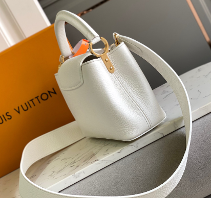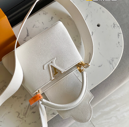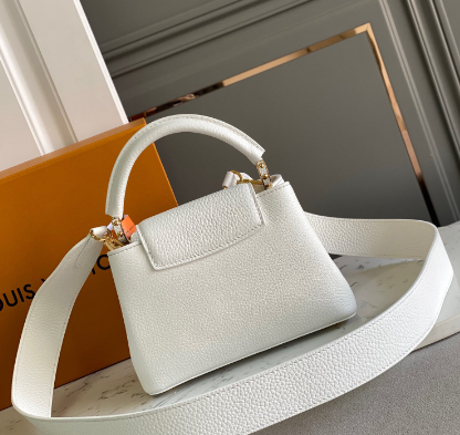 Louis Vuitton Black Leather Capucines Mini Bag – White