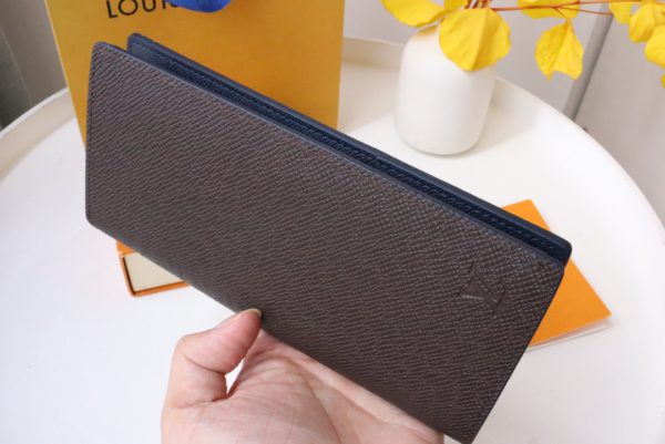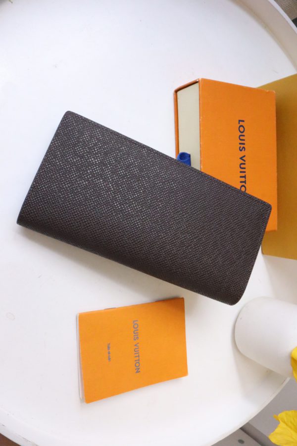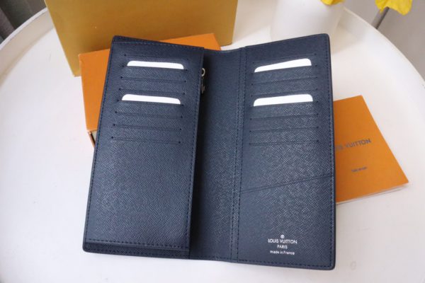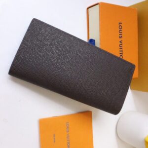 This stylish multifunctional wallet is crafted from Taiga leather in a discreet gray and black hue. The elegant design showcases textured leather and features practical details including multiple compartments for bills and receipts, a coin pocket and 17 card slots.