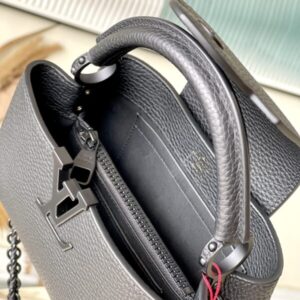 This Capucines BB handbag is made of luxurious cow leather and matte metal parts to convey a modern attitude. It has a new horizontal configuration that brings together classic elements of the same series. The adjustable woven chain is convenient for shoulder or cross-body wear, making it a trend to store mobile phones, short wallets and other small accessories.