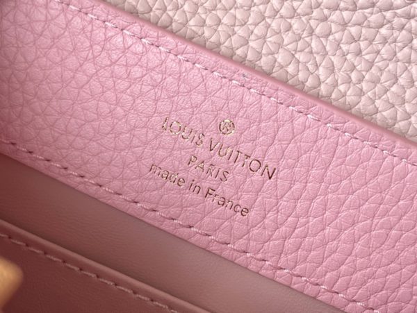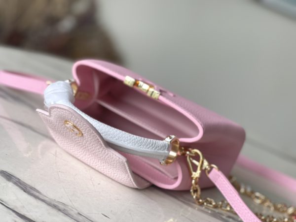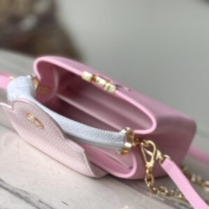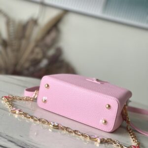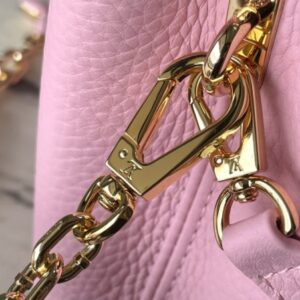 This Capucines handbag is made of Taurillon leather, which faintly reflects the shades of the same color, which makes the classic shape more eye-catching. Matched with the enamel Monogram floral chain, it can be carried by hand, on the elbow or on the shoulder strap.