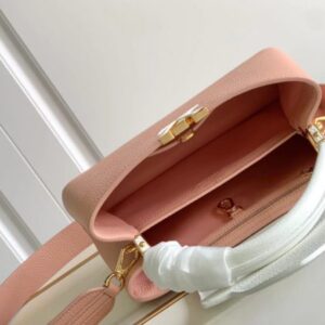 Capucines handbag French imported calfskin, shiny metal decorations, unique Capucines cover can be placed inside the bag to display the letter logo, and can be turned out to present the Monogram Flower pattern