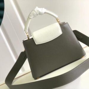 Capucines handbag French imported calfskin, shiny metal decorations, unique Capucines cover can be placed inside the bag to display the letter logo, and can be turned out to present the Monogram Flower pattern.