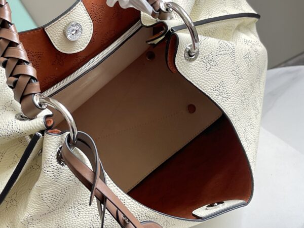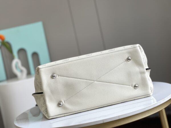 This bag is made of imported grain Taurillon calfskin. Its fashionable outline is very youthful. The whole leather punching woven wrist double tag ladies shoulder bag is especially beautiful on the shoulder. It is oversized Shiny palladium copper twist-lock closure adds an edgy edge.