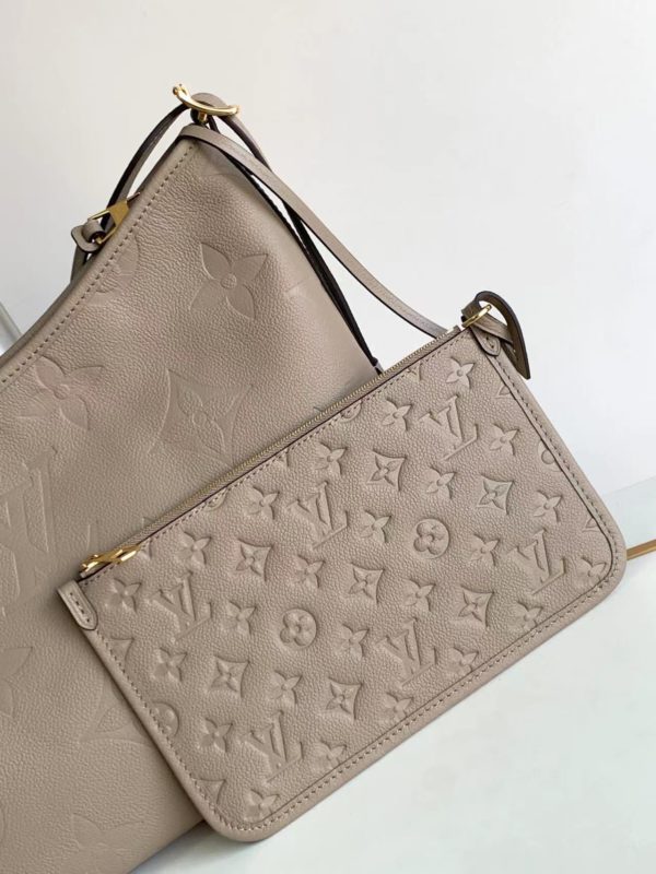 Matching details The CarryAll medium handbag is made of Monogram Empreinte embossed leather. The ample configuration has a neat inner layer, and the large inner bag adds functional elements. The matching Monogram embossed zip clutch is secured by a leather strap. A personal companion for urban life.