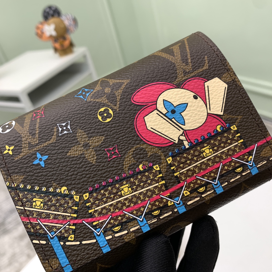 Christmas Victorine wallet is made of Monogram canvas, colorfully showing the scene of Louis Vuitton mascot Vivienne riding the brand’s traditional hard case roller coaster, lighting up the gift with a cheerful festive atmosphere. Compact size packs multiple functions.