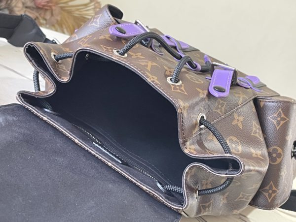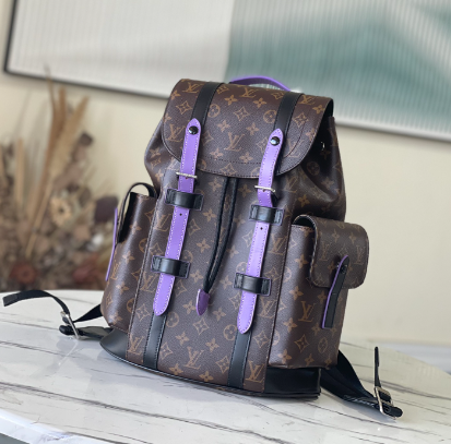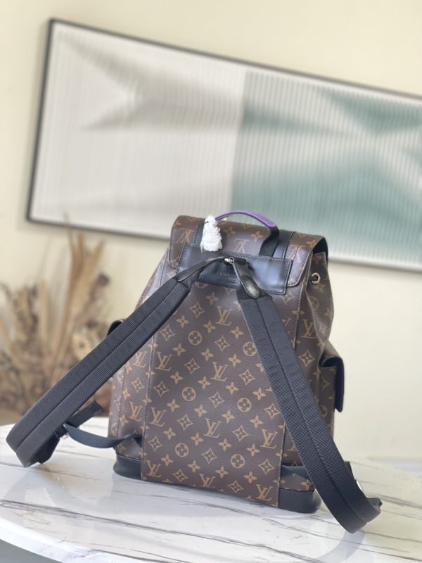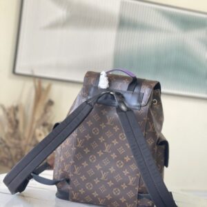 This Christopher Backpack condenses the classic design size, and continues the iconic elements such as side pockets and snap button double shoulder straps. Monogram Macassar canvas with bright calfskin trim and an interior tablet pocket provide a modern way to carry your everyday essentials.