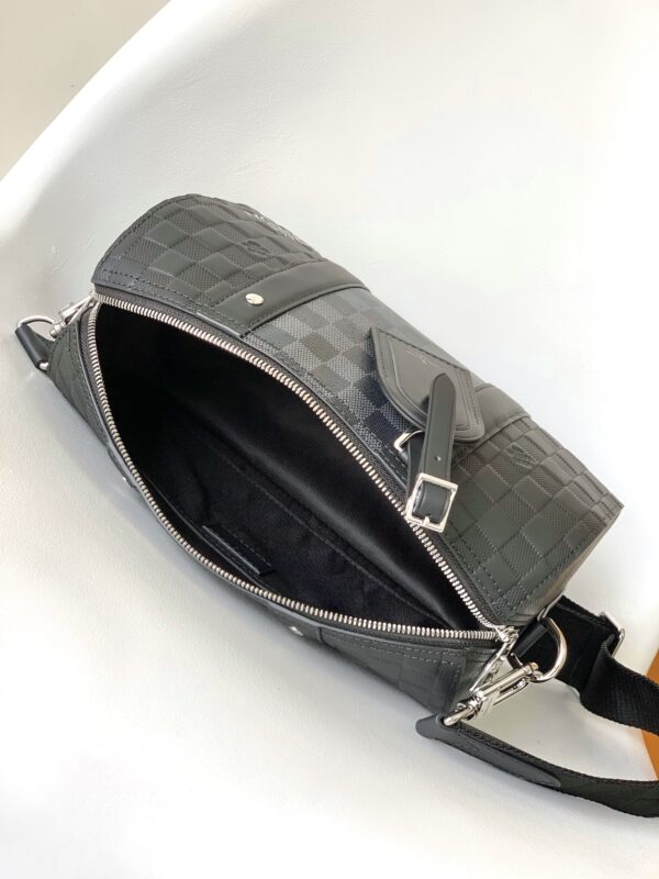 This City Keepall handbag combines Damier Infini embossed leather and Damier Graphite canvas to present the concise lines of the checkerboard pattern. The Damier motif is embellished with wide jacquard shoulder straps, richly detailed diagonally to the Louis Vuitton Paris signature.
