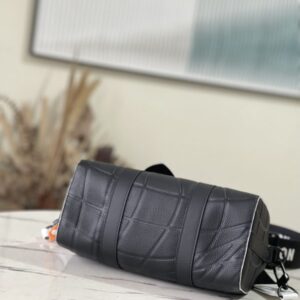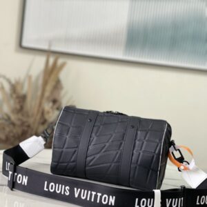 Black Men’s Bag Pillow Bag Collection CITY KEEPALL Handbag m21543 Gram Color (Letter) This City Keepall bag is made of Taurillon leather and is part of the 2022 FIFA World Cup capsule collection. The embossed pattern on the leather is reminiscent of the net used for goals. The bag is signed with the initials of LV in the same color, and it also has a leather nameplate shaped like a football team’s crest.