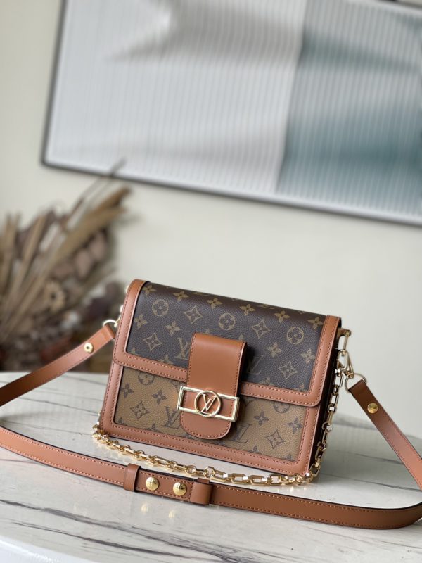 Medium-sized classic Dauphine handbag series new works: from the 2019 early spring series, an improved version of the design by Nicolas Ghesquière, the artistic director of women’s wear. Combining Monogram canvas with Monogram Reverse canvas, with a chain strap and magnetic closure, it shows the brand’s heritage in a modern style, showing its fashionable endowment.