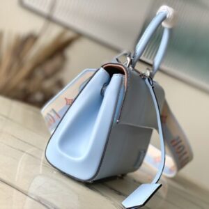 This Cluny mini handbag shows two styles of detachable jacquard shoulder strap: the Louis Vuitton logo declares the brand identity, and when turned over, the Monogram flower quietly blooms. Epi leather bag with silky resin LV logo. Detachable shoulder strap for a more formal look.