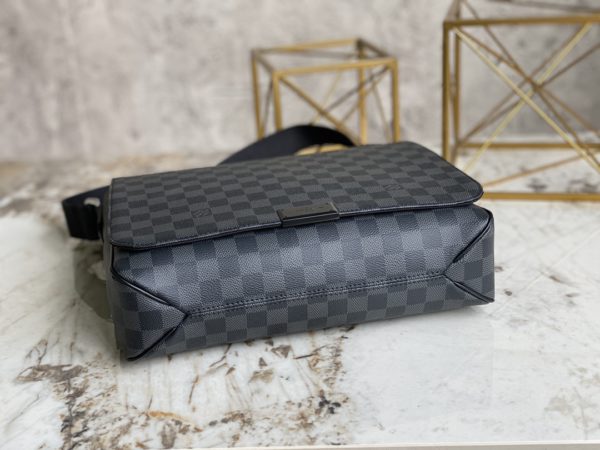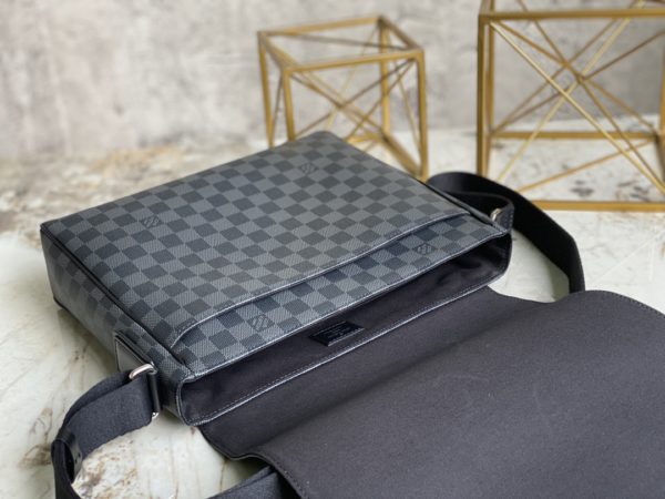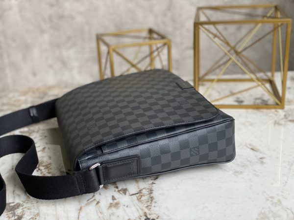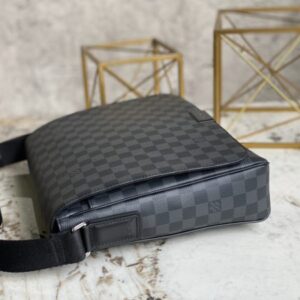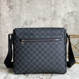 Damier Graphite handbag, Heiger men’s bag messenger bag series, classic shape, multiple practical pockets, moderate size, easy to carry A4 size documents, whether it is work or leisure, it is an ideal companion for daily life, the front hardware is engraved with clear letter logo, adjustable shoulder strap, magnet opening and closing, the back pocket is equipped with hardware.