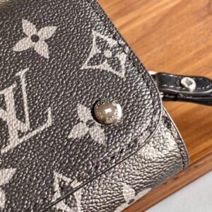 MONOGRA’s spacious snap buttons, rich internal and external pockets and interior bring great practicality. The Kasai clutch made of the iconic Damier Graphite coated canvas can be clipped on the inside of the arm or tied to the wrist through the strap! The strap can be worn with a press buckle.