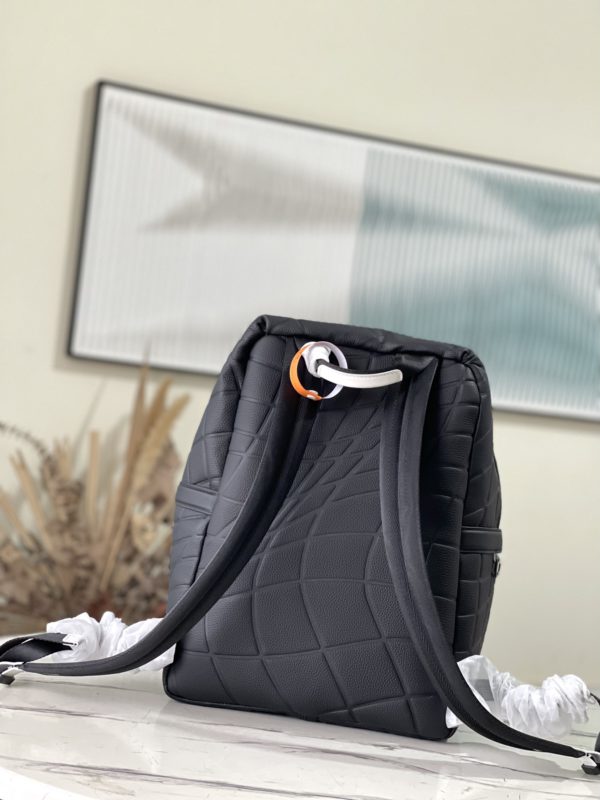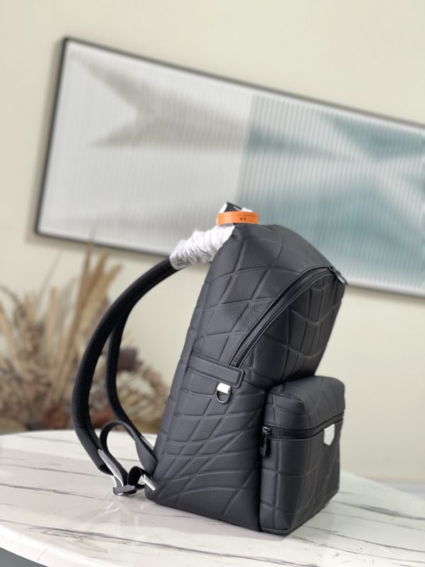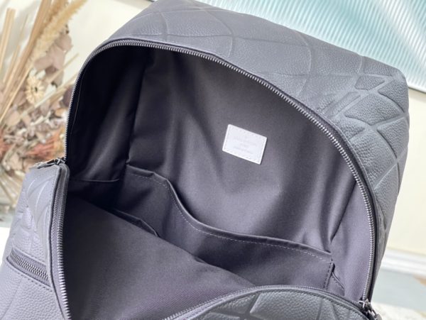 Black full leather backpack series DISCOVERY small backpack Discovery small backpack is made of Taïga leather, reinterpreting the classic campus trend design. A glossy exterior wraps around two interior pockets and an iPad pocket, and two adjustable shoulder straps ensure comfortable carrying.