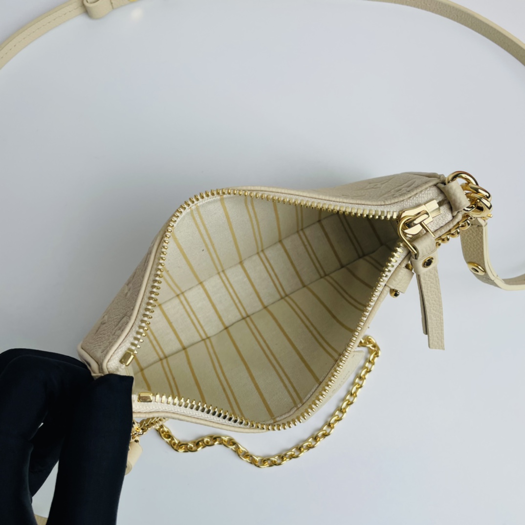 The Easy Pouch On Strap handbag of the 2022 spring series is made of Monogram Empreinte leather, with Monogram embossing and soft texture to reveal a crafty style. Use the chain and adjustable leather strap to carry it over the shoulder or across the body.