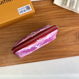 This cosmetic bag joins the Escale accessories and leather goods collection for summer 2020. Featuring a new tie-dye print in Monogram Giant canvas, it’s roomy, with a wide zip opening and a washable interior for everyday wear or on-the-go.