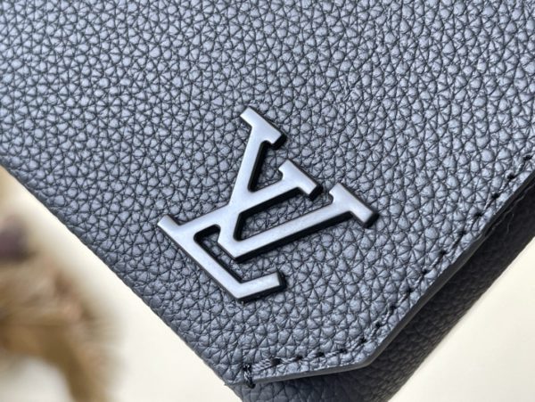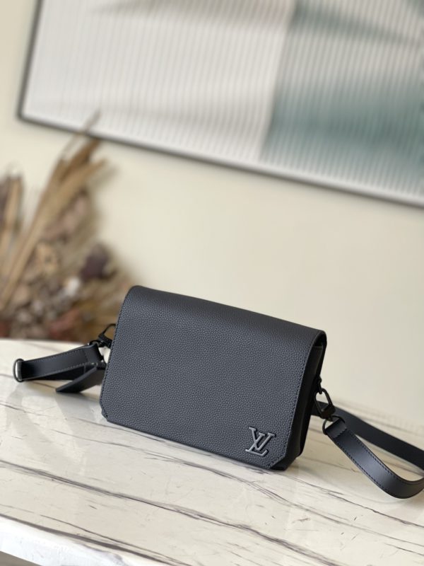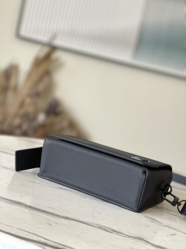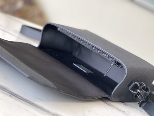 Black full leather men’s messenger bag series Flap mini handbag is made of calf leather, and its cut corners are inspired by the creation of the old Air France letterhead by the LV Aerogram series. The details are marked with LV letters, the magnetic buckle flap opens ample compartments, and the adjustable shoulder strap is easy to carry.