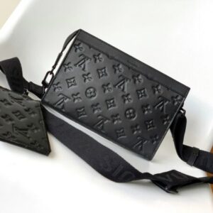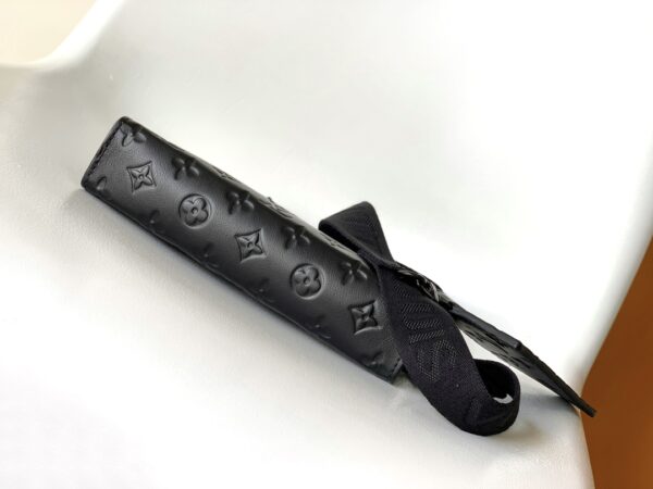 Gaston Wearable Wallet handbag was born out of the Louis Vuitton Pochette Voyage clutch. It is cut out of Monogram Shadow leather to a suitable size and can accommodate mobile phones and other travel needs. The detachable and adjustable shoulder strap features a detachable card holder, ideal for stashing a contactless payment device or transit card.