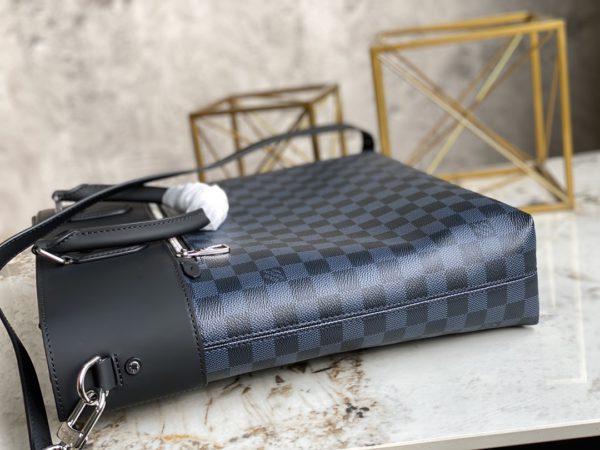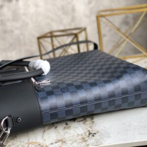 Blue grid briefcase series combines contemporary elegance and functionality, this Newport shopping bag is the ideal bag for modern active men. The epitome of urban chic, the roomy interior is crafted in classic Damier Cobalt canvas and sturdy leather, with multiple interior pockets for all your essentials. The top handle and detachable, length-adjustable shoulder strap give you a variety of carrying options.