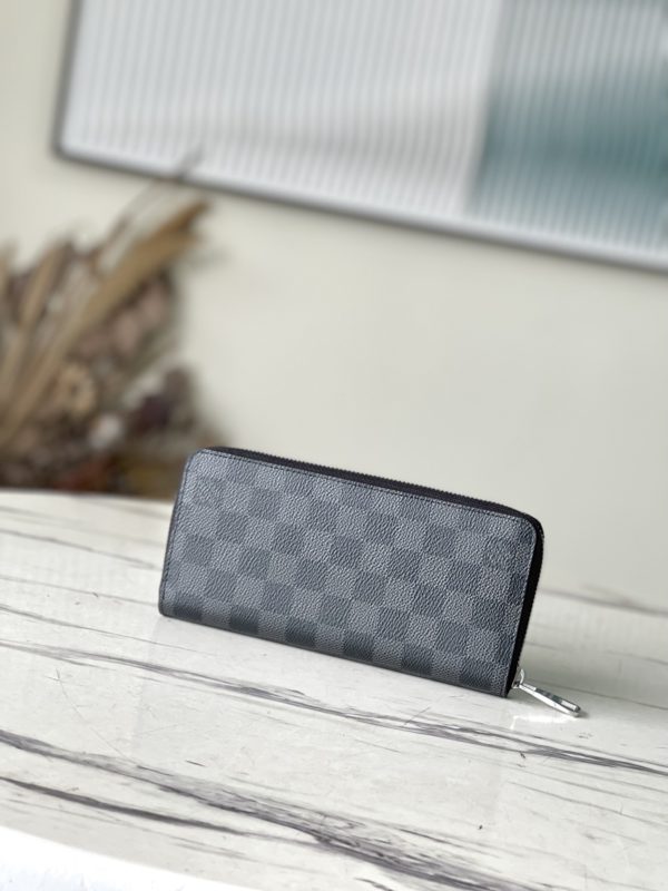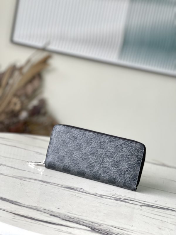 Haig ZIPPY VERTICAL Wallet This men’s vertical zip wallet is elegant in durable Damier Graphite canvas. Multiple practical pockets and compartments easily hold cash, credit cards, and change.