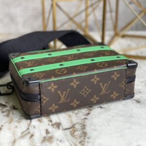Presbyopic green men’s messenger bag series HANDLE SOFT TRUNK handbag This Handle Soft Trunk handbag is made of Louis Vuitton’s iconic Monogram Macassar canvas, combined with rivet corners and leather reinforcement straps, evoking the memory of the brand’s box-making tradition. The sleek shape and detachable shoulder strap make it easy to carry small electronics and personal needs. Wide mouth design provides easy access to items.