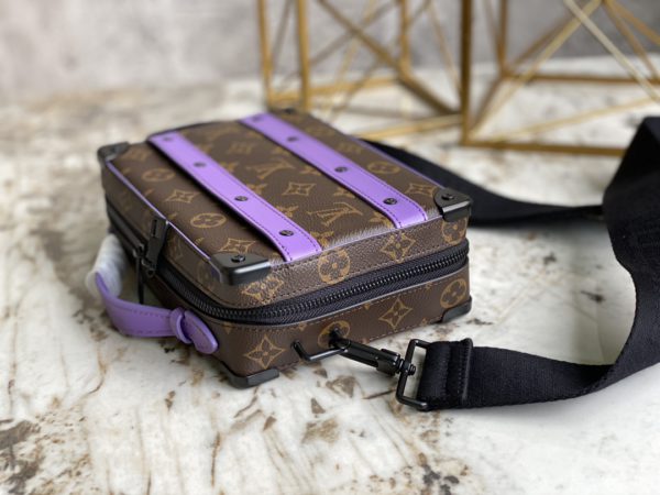 Presbyopic purple men’s messenger bag series HANDLE SOFT TRUNK handbag This Handle Soft Trunk handbag is made of Louis Vuitton’s iconic Monogram Macassar canvas, combined with rivet corners and leather reinforcement straps, evoking the memory of the brand’s box-making tradition. The sleek shape and detachable shoulder strap make it easy to carry small electronics and personal needs. Wide mouth design provides easy access to items.