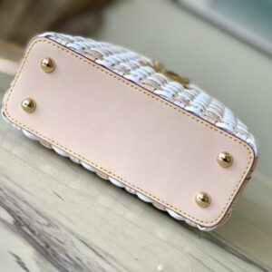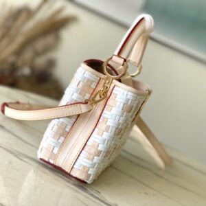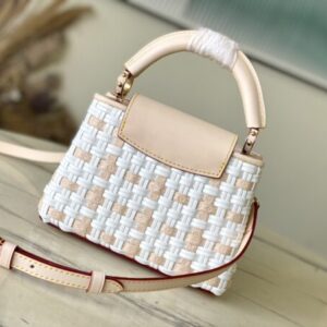 LV Heavenly Capucines handbag is from the Valentine’s Day limited series. It has a canvas strap and LV embossed leather ingeniously woven bag body, and is made of cow leather to shape the top handle, flap and adjustable shoulder strap. Leather and metal LV logo Complete the overall