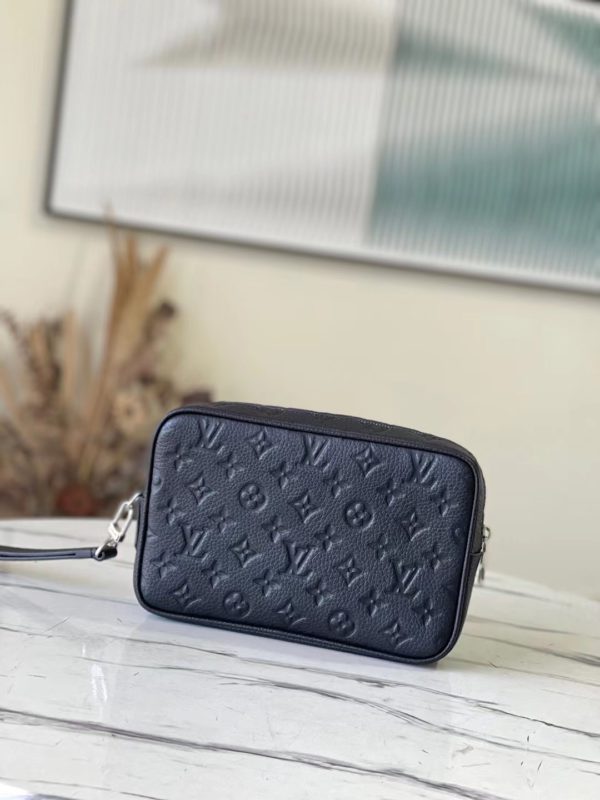 Full leather embossed zKASAI handbag Spacious zipper opening Abundant internal and external pockets and slots bring great practicality This Kasai handbag made of iconic Damier Graphite coated canvas can be clipped on the inside of the arm or Can be tied to the wrist through the strap.