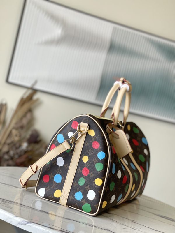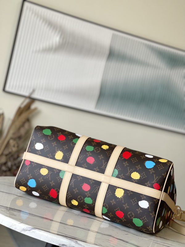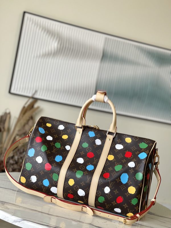 Japanese artist Yayoi Kusama used polka-dot patterns to explain the artistic fantasy and color obsession in his mind, and the x Yayoi Kusama cooperation series thus launched the LV x YK Keepall45 travel bag to reproduce the colorfulness on the Monogram canvas through exquisite craftsmanship Polka dots, the three-dimensional effect seems to be hand-painted.