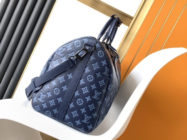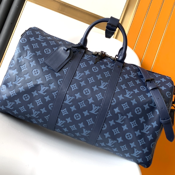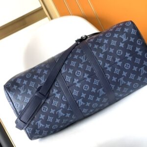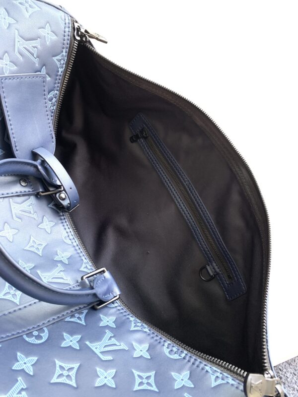 Keepall BANDOULIÈRE 50 travel bag meets the restrained style of Monogram Shadow calf leather, and presents Monogram elements with printing and embossing techniques. Cabin luggage dimensions include plenty of room, and the zipped inner pocket stores valuables.