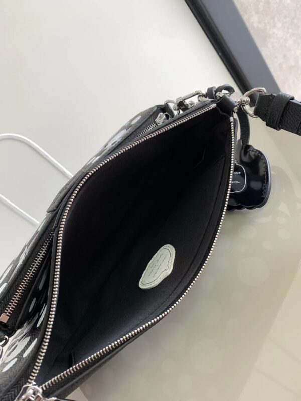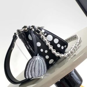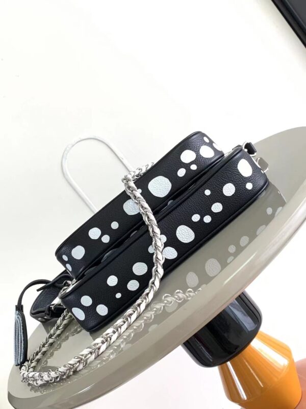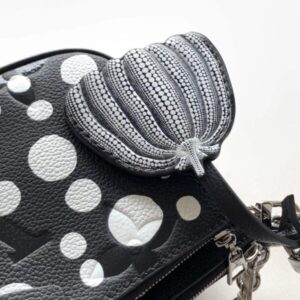 Louis Vuitton once again joined hands with Yayoi Kusama to inject new interest into this LV x YK Multi Pochette Accessoires handbag. The pattern of polka dots of different sizes is paved with Monogram embossed calfskin leather, reproducing the iconic elements in the works of the Japanese artist. The pumpkin-shaped decoration indicates another visual calling card of Yayoi Kusama.